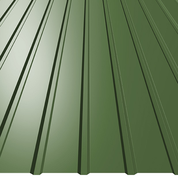 T8 trapézlemez, RAL6011 fényes (egyoldalas rezeda zöld) - fal profil - vtg.: 0,50mm